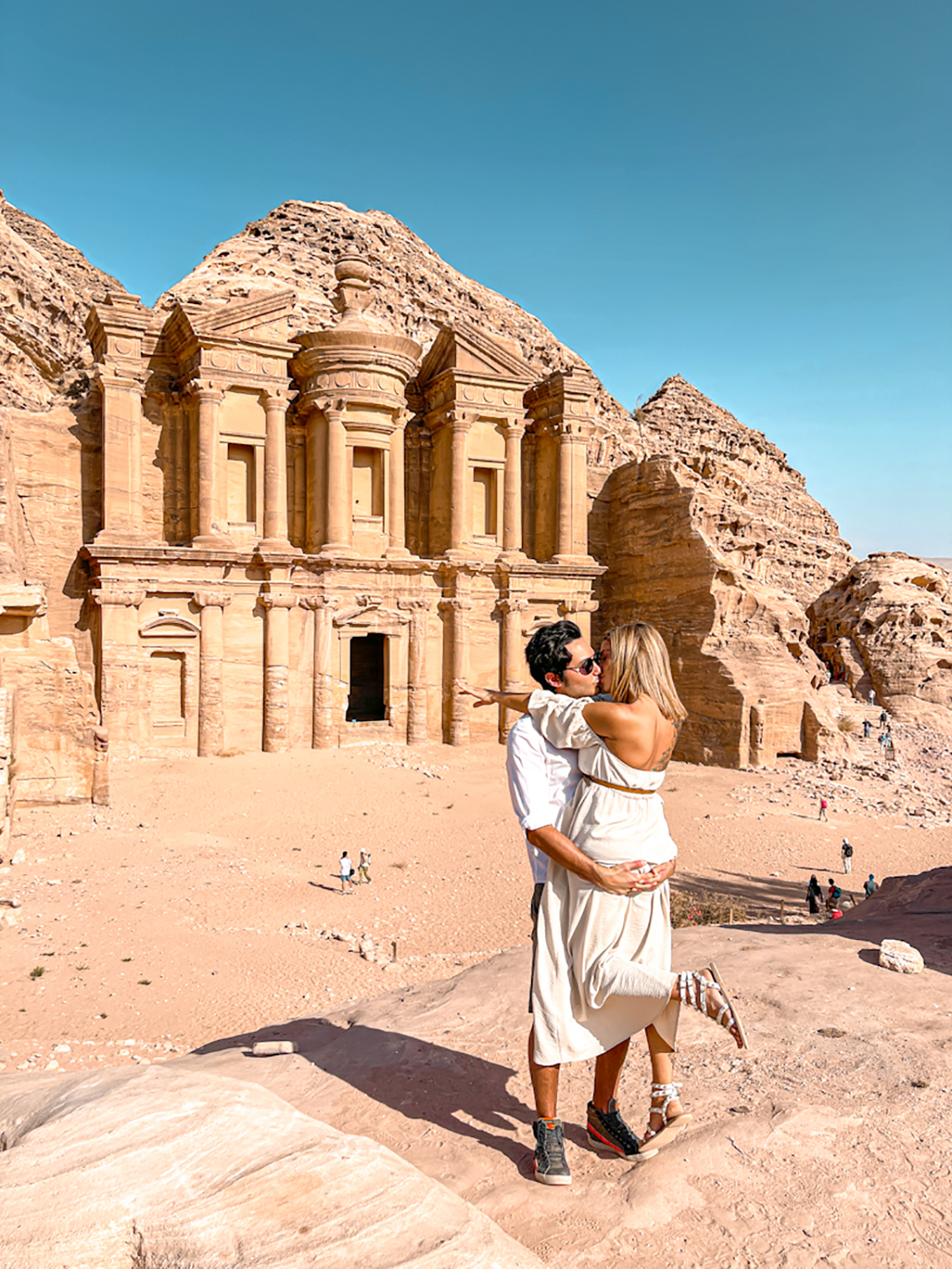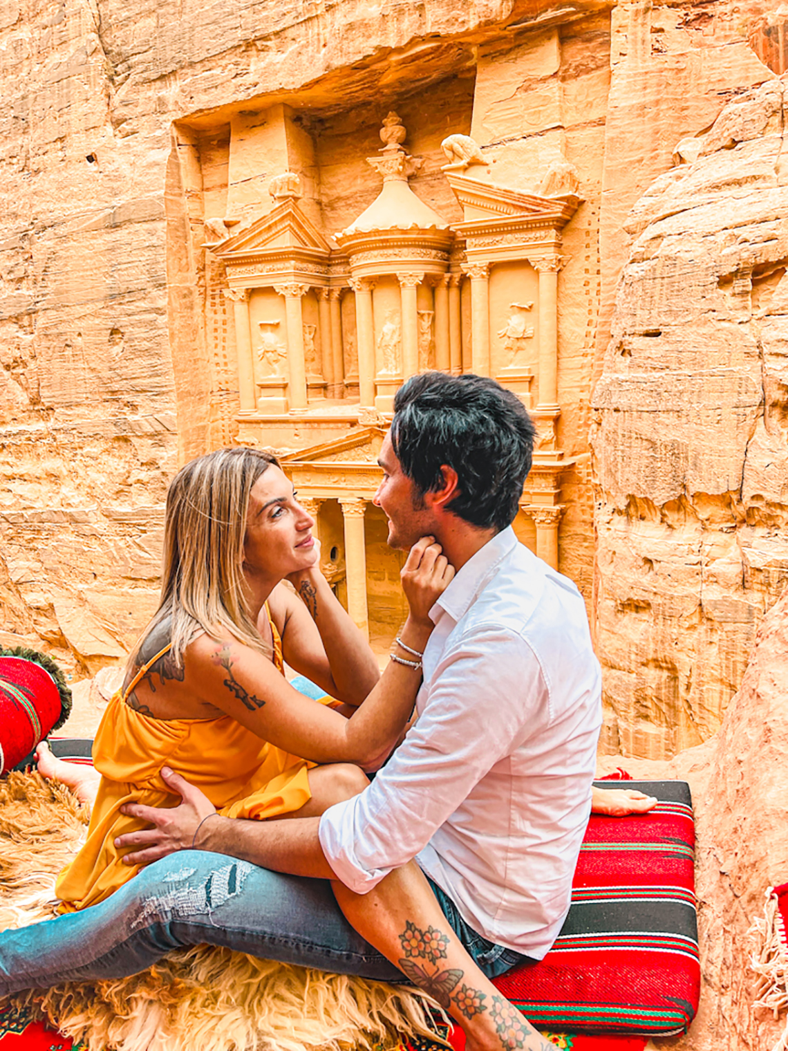 Ci teniamo a precisare che se avrete intenzione di ammirare e fotografare il tesoro dall’alto non servirà fare percorsi lunghi o particolarmente pericolosi, ci si arriva con facilità in 10 minuti, partendo proprio dal tesoro. Per questo breve tragitto dovrete farvi accompagnare da un Beduino. Noi abbiamo trovato Alì, un ragazzo molto simpatico che ci ha aiutato con scatti e video strepitosi. Dall’ingresso al tesoro ci sono circa 40 minuti di cammino. Dopo aver ammirato la parte più famosa di una delle sette meraviglie del mondo, è già ora di tornare in hotel.